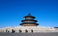 天坛公园:是明、清两代帝王祭天祈谷之处,始建于明永乐十八年(1420年),是我国现存最大的古代祭祀性建筑群,占地约270万平方米,以严谨的建筑布局、奇特的建筑结构、瑰丽的建筑装饰而著称于世。天坛有恒墙两重,形成内外坛,坛墙南方北圆,象征天圆地方。天坛是圜丘、祈谷两坛的总称。主要建筑在内坛,圜丘坛在南、祈谷坛在北,二坛同在一条南北轴线上,中间有墙相隔。圜丘坛内主要建筑有圜丘坛、皇穹宇等;祈谷坛内主要建筑有祈年殿、皇乾殿、祈年门等,内坛西墙内有斋宫,外坛西墙内有神乐署。地址:崇文区天坛路。