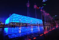 2.水立方:国家游泳中心又被称为“水立方”(Water Cube),位于北京奥林匹克公园内,是北京为2008年夏季奥运会修建的主游泳馆,也是2008年北京奥运会标志性建筑物之一。它的设计方案,是经全球设计竞赛产生的“水的立方”([H2O]3)方案。