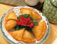 清《帝京岁时记胜》中写:“正月荐新品物,则青韭卤馅包,油煎肉三角”可惜现在都一处也很少制作了。